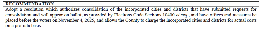 - C6 – November 2025 Election Consolidation: Consolidates the statewide Proposition 50 redistricting vote with the City of Redding’s proposed public safety sales tax measure, placing both before voters on the November 4, 2025 ballot.This comes just one week after a contentious 3–2 vote in which Supervisor Matt Plummer successfully delayed approval for the County Clerk to run the City’s sales tax election. Plummer argued the City’s measure should be tied to unrelated negotiations over land for custody operations, and was joined by Chair Crye and Supervisor Harmon in pushing the pause.