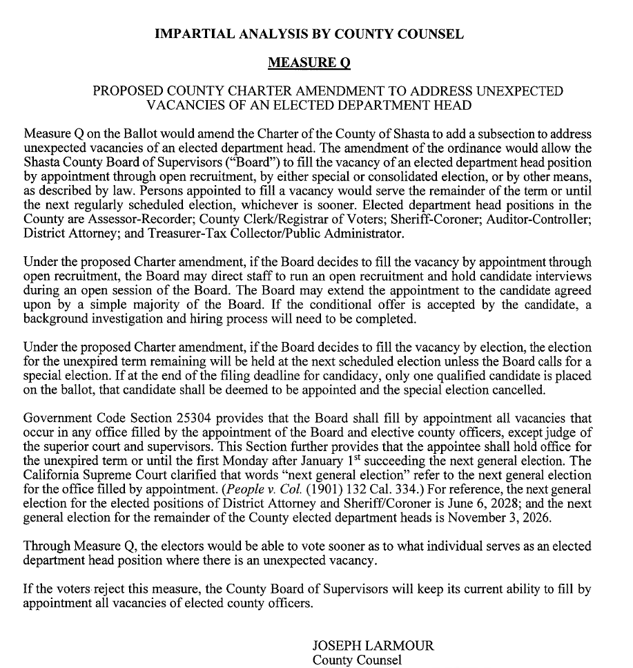 In the November 2024 election, Garman signed the official argument against Measure Q, a ballot initiative that would have given the board power to appoint replacements for midterm vacancies in elected offices. He warned that the measure lacked voter input and that special elections could cost the county $900,000 each.