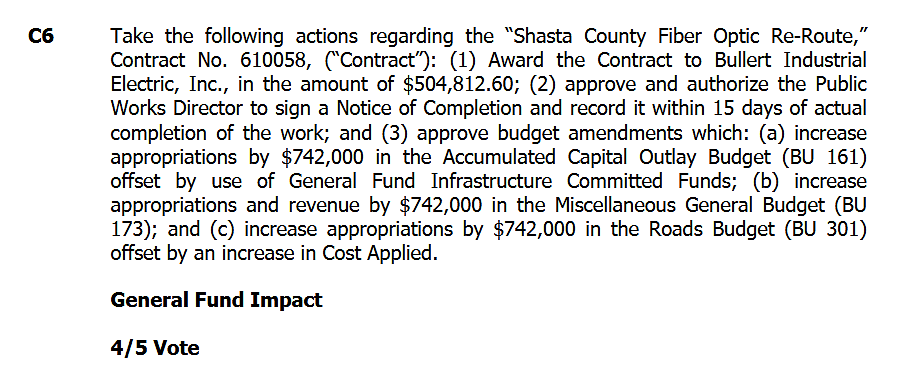 The board will consider awarding a $504,812 contract to Bullert Industrial Electric, Inc. to re-route the county's fiber optic network — work that must be completed before the county can proceed with demolition of the old courthouse.