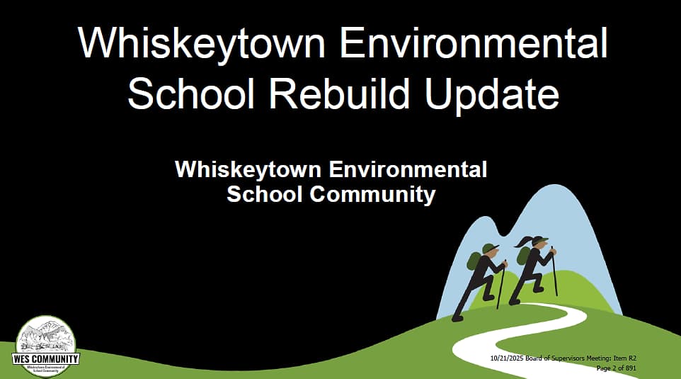 The Board will hear an update from the WES Community Board and consider a letter of support for the rebuild effort. Since the 2018 Carr Fire, WES has been raising funds through its “Grow Back Stronger” campaign (goal: $7.5M). As of mid-2025, the campaign reported about $5.7M raised, with demolition of fire-damaged cabins underway; WES has resumed field trips and day programs, but full overnight operations are still a few years out. This is an advocacy only item, and therefore there are no county funds being spent. A county support letter could amplify fundraising and partner engagement.